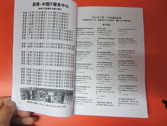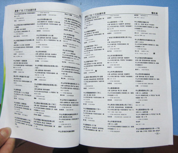 这本《广东IT通讯》从信息收集到整体编排,历时数月,收录广东的商家数据近两万条,涵盖广东地区21个市区的IT厂家商家。这本书是32开大小,共360余页,厚度约2cm。虽然信息量很大,但是拿在手上仍然十分轻巧,可方便随身携带!